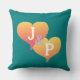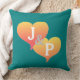 Monogram Sunset Heart Teal Green Reversible Pillow