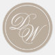 Monogram Taupe Elegant White Calligraphy Initials Classic Round Sticker