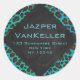 Monogram Teal and Brown Leopard Classic Round Sticker