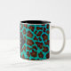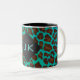 Monogram Teal and Brown Leopard Two-Tone Coffee Mug