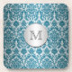 Monogram Teal and Silver Damask Coaster Set (6)