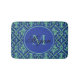 Monogram Teal Blue Damask Embossed Style Bath Mat
