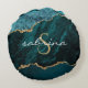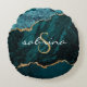 Monogram Teal Blue Gold Agate Geode Round Cushion
