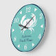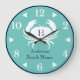 Monogram Teal Blue White Navy Blue Crab Nautical Large Clock