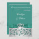 This romantic and elegant monogrammed light teal green and silver grey floral wedding invitation has a PRINTED ribbon and bow with a pair of PRINTED diamond jewel and FAUX glitter (simulated) joined hearts on it, with an ornate scrolled border on the back. There is also a quotation that says: Love does not consist of gazing at each other, but looking outward in the same direction. ***PLEASE NOTE there are no raised elements on this invitation. Everything is printed flat. ***PLEASE NOTE that if you change the fonts or size of the fonts, it may alter how your invitation prints. It will print the way you see it on your monitor, so if you have alignment issues, or sizing problems, please contact me for help. I will not see your invitation once you order it, and Zazzle will NOT edit anything (typos, alignment, etc.). If you require assistance or would like any other matching items, please email your request to niteowlstudio@gmail.com.