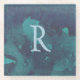 Create your own coaster with a beautiful blue abstract watercolor background and simple monogram template.