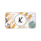 A fun sticker featuring a modern abstract design with brush strokes and pen marks in shades of blue and terracotta. Add your initial set in a coordinating font in black. Customize further by using the custom tab.