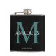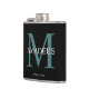 A wonderful thank you gift for a groomsman. Sleek, elegant, black case with a monogram first name and large turquise first letter of first or last name behind it.