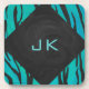 Monogram Tiger Black and Teal Print Pattern Coaster