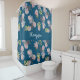 Monogram trendy navy blue floral pattern stylish shower curtain