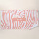 Monogram, Trendy Beach Towel, personalised template. Peach coral colour Striped Zebra Pattern Trendy Design. For Sports, Toys & Games > Sports & Outdoor > Beach Towels. For Her, Girl, baby, Kids, Woman, Mother, Mum, Grandmother, Birthday, Anniversary, Holiday, Spring, Summer 2025 Trend, Tropical Sea Beach Party, Beautiful Gift. Design with text template Personalise them by adding or change name.