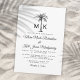 Invite your guests to help you celebrate your special day with this elegant black and white invitation featuring modern script typography, your initials and an artistic palm tree. Perfect for a beach or outdoor wedding venue.