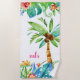 Monogram Tropical Teal Pink Floral Palm Trees Beach Towel