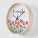 Monogram Tulips Spring Flowers Colourful & Cheerfu Clock