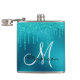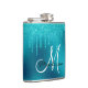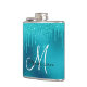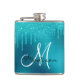 Monogram Turquoise Blue Glitter Drips Girly Hip Flask