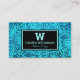 A turquoise and blue ombre leaf foliage damask pattern on a rich, deep turquoise textured background adorns this stunning, modern, trendy custom business card. Personalise with your initial, full name, and business on the front. Fill in the back side with your phone numbers, address, email, website, and social media accounts. Makes a chic, smart, and stylish statement wherever you go.