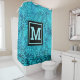 Monogram turquoise ombre leaf pattern modern bold shower curtain