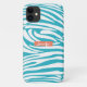 Monogram, Trendy Case-Mate iPhone 4 case, personalised template. Turquoise Blue colour Striped Zebra Pattern Trendy Design. For Electronics > Phone Cases > iPhone Cases > iPhone 11 Cases. For Her, Girl, baby, Kids, Woman, Mother, Mum, Grandmother, Birthday, Anniversary, Holiday, Spring, Summer 2025 Trend, Tropical Sea Beach Party, Beautiful Gift. Design with text template Personalise them by adding or change name.