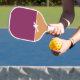 Pickleball purity in two solid colours. Dark berry red and warm cinnamon orange. And in white, your initials in a classic curved font. A reduced, minimalist design – strong contrasts, clean lines, truly Zen.