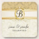 Elegant Victorian style ecru and gold damask design with classic, traditional monogram script initial -- Customise the names of the Bride and Groom to create your own truly unique and personalised gift that the happy newlyweds will treasure forever. Also makes a great gift for happily married 50th Anniversary couples.