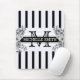 Monogram Vintage Floral Black Stripes Mouse Pad