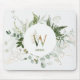 This mousepad features a pretty green and gilded gold foliage watercolor wreath and an alphabet "W" to be personalized with her name underneath.