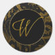 Black and gold Monogram seals with a beautiful scrolling script text art on elegant floral damask. These stickers add a unique touch of class to your wedding invitations!