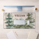 Elevate your workspace! Monogram Watercolor Pine Forest & Mountain Rustic Desk Mat, personalised with your name. Nature-inspired productivity