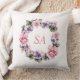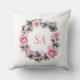 Monogram Watercolor Pink Purple Wreath Floral Cushion