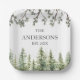 Monogram Watercolor Rustic Pine Trees and Branches Paper Plate