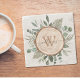 Monogram Watercolor Rustic Wood Slice and Foliage Stone Coaster