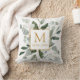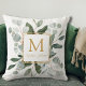 Introducing our Monogram Watercolor Tropical Green Leaves Throw Pillow. Featuring watercolor illustration of greenery bouquet arrangement with customisable monogram on the middle in gold colour. Suitable as gift for the baby or as home decor accent and housewarming gift.