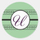 Monogram Wedding Sticker Modern Swirl Borders Shown Mint But You choose background colour and font colour almost 200 colours!