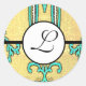 Monogram Wedding Brite Aqua Blue Borders Classic Round Sticker