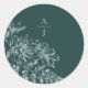 Monogram Bride and Groom Floral Emerald Green Classic Round Sticker
