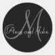 Monogram Wedding Sticker Black By Elke Clarke©2009. More designs at WhiteWhimsicalWeddings.com and WhiteWhimsicalWeddngs.blogspot.com. The design is simple yet classic and fits with any invitation and wedding theme. THE MONOGRAM GALLERY allows you to customise the names, monogram and colours of this sticker. Just click on the "CUSTOMIZE" button and follow the prompts.