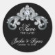 Monogram Wedding Save the Date Black Silver Classic Round Sticker