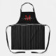 This monogram apron features a pinstripe black-white pattern with solid black at the top where your red initial and white name can be added.