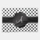 White black polka dots pattern background with black scallop circle and black diamonds stripe (not real diamonds) your monogram gifts or your initials letter change to any letter a,b,c,d,e,f,g,h,i,j,k,l,m,n,o,p,q,r,s,t,u,v,w,x,y,z Polka dot gift ideas.