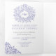 Monogram white blue leaves wedding Tri-Fold invitation