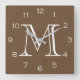 Monogram White Numbers On Brown wccnt Square Wall Clock