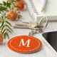 A keychain with a white monogram on a bright orange background. Customise the keychain with your own initial or initials, colours, among other options.