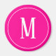 A round magnet with a white monogram on a hot pink background. Customise the magnet with your own initial or initials, colours, among other options.