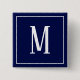 Monogram White on Navy Blue Square Button