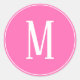 A classic round sticker with a white monogram on a pink background. Customise the sticker with your own initial or initials, background colour, among other options.