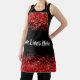 Cook and entertain in style with our chic monogram all-over-print apron. This elegant apron features the heartfelt message "Love Lives Here" prominently displayed in a white text, standing out beautifully against a black background. The top and bottom edges are adorned with a sparkling red glitter border, adding a touch of glamour and sophistication to your kitchen attire.