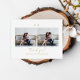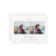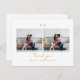 Modern minimalist gold and white wedding two photo thank you postcard features elegant hand lettering and a simple monogram with a custom personalised thank you message and return address on the back of this chic white and gold colour card.