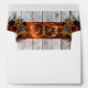 Design features a barnwood background with ribbon, wildflower bouquets and monogram placeholder on the inside and back flap. Outside of envelope bordered with ribbon. Designed to coordinate with Rustic Wildflowers & Ribbon Wedding Collection. To change details, click «Personalise». To move the text or change the text size, font, or colour click «Click to customise further»
