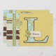 L monogram with name tag and scalloped trim binding edge with novelty trims and 3D look polka dot frog with button eyes.