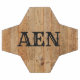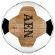 A monogrammed wood rustic country brown black soccer ball, available with or with out stand.